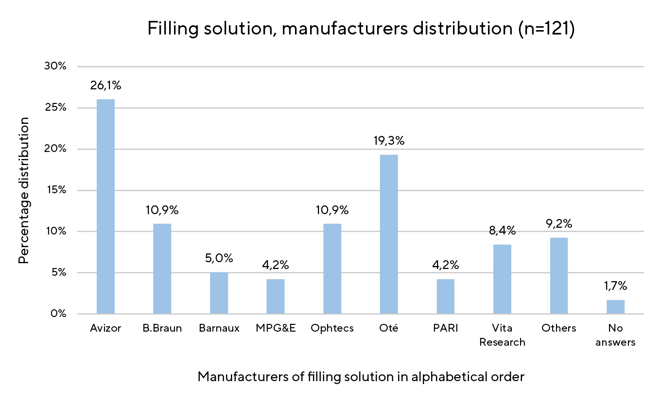 In addition to focusing on filling solution practices, other aspects relevant to the fitting process were explored, including the direct sale of filling solutions. Of the respondents, 87.6 % (n = 106) indicated that they sell the solution directly to their patients.
