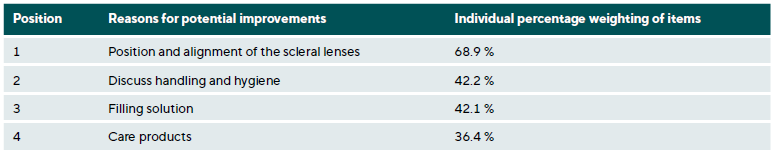 Furthermore, the results show that both the effort required and the perceived difficulty of fitting SCL decrease with increased experience. A study by Schornack et al. confirms this trend, demonstrating that experienced practitioners require fewer appointments to successfully fit SCL.23