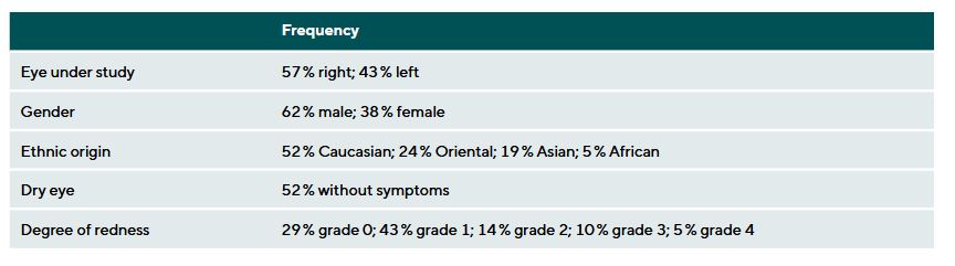 The conjunctiva of the eye consists of a large number of blood vessels and fine capillaries. When irritated, the vessels dilate and supply the tissue with more blood; this is referred to as conjunctival injection or hyperaemia. Oxygen exchange is stimulated, and an increased immune response occurs. Tarsal, limbal and bulbar redness of the eye are therefore caused by hyperaemia of the blood vessels in the conjunctiva and/or episclera.1 This is known as conjunctival or ciliary injection.2 The causes in such a case are not always specific.1,3 Possible causes for these reactions are diverse and can, for example, be attributed to environmental conditions, contact-lens wear, allergies or various (eye) diseases. Other factors may be metabolic, chemical, toxic and mechanical or the effects of keratoconjunctivitis sicca.4,5 To evaluate eye redness, a variety of grading scales based on photographs, as well as drawn or computer-generated images, have been developed.4 Examples of grading scales used worldwide are the Cornea and Contact Lens Research Unit (CCLRU) grading scales (Brien Holden Vision Institute),6 Efron grading scales 4 and JENVIS grading scales.7 As early as 1889, August Müller reported the distinction between bulbar and limbal redness, which is used as standard in most grading scales today.8 Murphy et al. described a mean bulbar redness grade of 1.9, determined with the non-validated CCLRU classification key as physiologically normal (mean age of the test subjects: 29 years).9 “A bulbar redness of greater than grade 2.6 may be considered abnormal, and a grade change in bulbar redness of > or = 0.4 may be significant“.9 In an older test group with a mean age of 45 years, mean bulbar and limbal redness levels above 2.8 and 2.5, respectively were considered as symptomatic.9,10 One problem with printed grading scales is their lower precision due to subjective judgement.11 Furthermore, assessment with different grading scales for the same finding can lead to different results.12,13