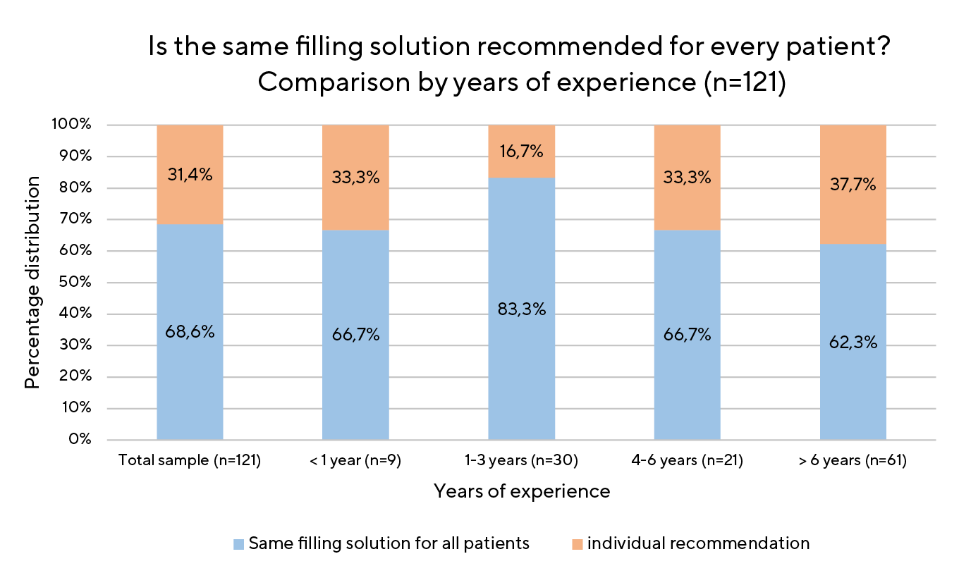 The purpose of this study is to collect and analyze practitioner data on filling solutions and demographic information. It also attempts to identify preferences and trends in the use of SCL filling solutions by surveying practitioners in German-speaking countries.