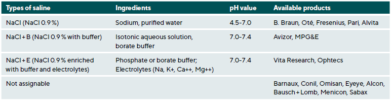 According to the Federal Institute for Drugs and Medical Devices (BfArM), buffer solutions are classified as excipients 25,26 and therefore, neither the exact ingredients nor their concentration needs to be specified.26,27 While buffer substances have been shown to have negative effects on human corneal-limbal epithelial (HCLE) and human conjunctival epithelial cells (HCjE) 13,25, no adverse effects are observed at very low concentrations.28 The exact formulas of buffered salines remain unknown.11,12