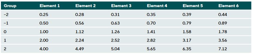 The 1951 USAF resolution test pattern was used to collect the data in accordance with the specifications of DIN EN ISO 11979-2:2014. This test chart was used by the US Air Force in 1951 to evaluate the imaging quality of optical systems such as aerial cameras. It is the simplest way of determining the limiting resolution of an optical element. Even today, the process is still based on the military standards valid at the time in accordance with MIL-STD-150A20. The test pattern consists of black and white bar groups, which are applied to the glass of the test chart using a chrome alloy. As can be seen in Figure 1, a bar group consists of six elements, which, in turn, are made up of three horizontal and three vertical bars. The length of the bars is in a ratio of 5 : 1 to their width. The resolution requirement of an optical element doubles as the group number increases, whereas the size of the bars is halved. The resolution can be calculated using the group and element number of the test pattern or read from Table 2. The higher the value, the better the spatial object resolution. In this study, the measured values of the IOL were read by a trained examiner who had already participated in previous studies.